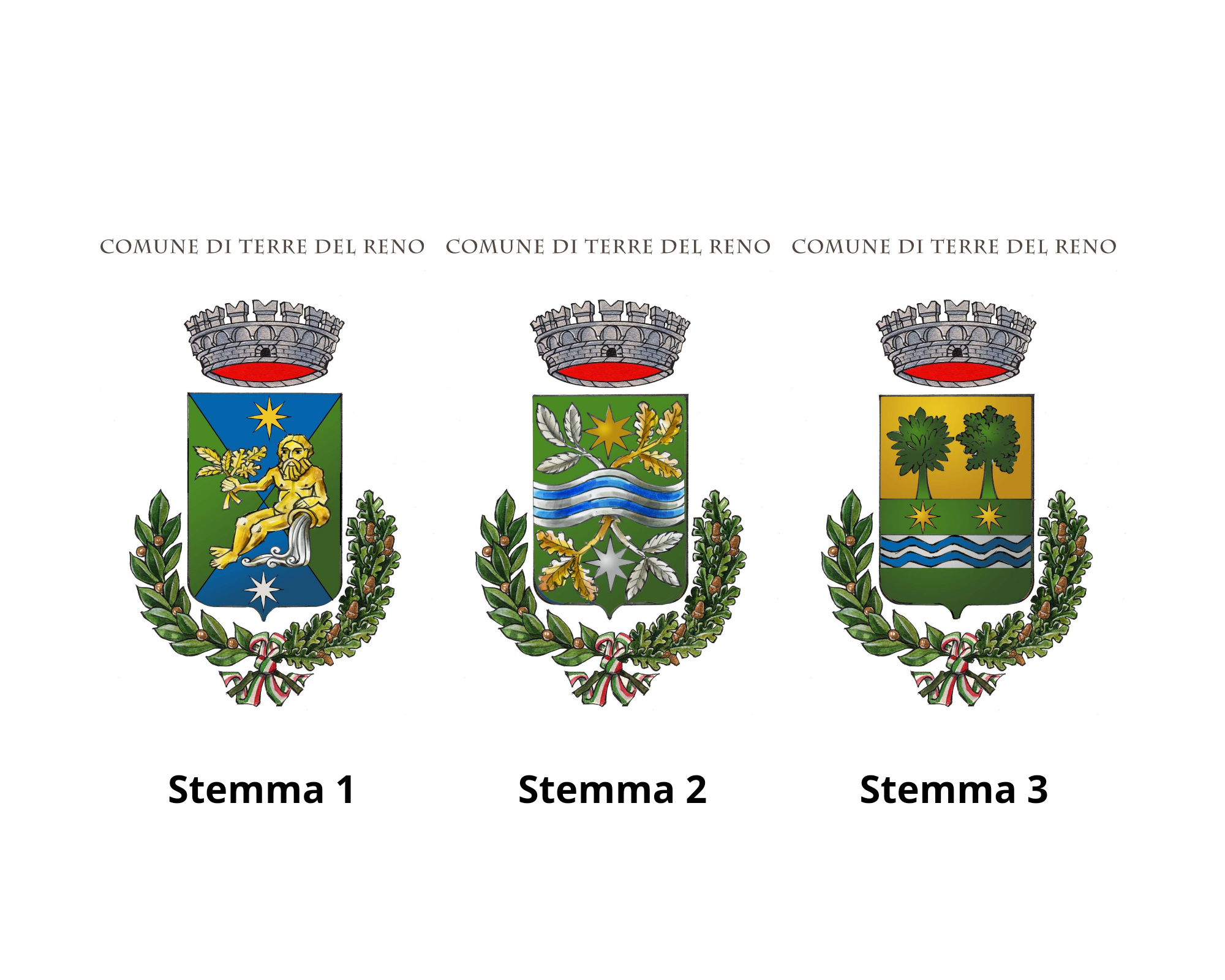 E’ giunto il momento di scegliere il nuovo Stemma Araldico del Comune di Terre del Reno e lo faranno i cittadini, scegliendo tra le tre bozze (vedi sotto) realizzate da Marco Foppoli, che è realizzatore delle tre proposte e studioso degli antichi codici e stemmari medioevali italiani.