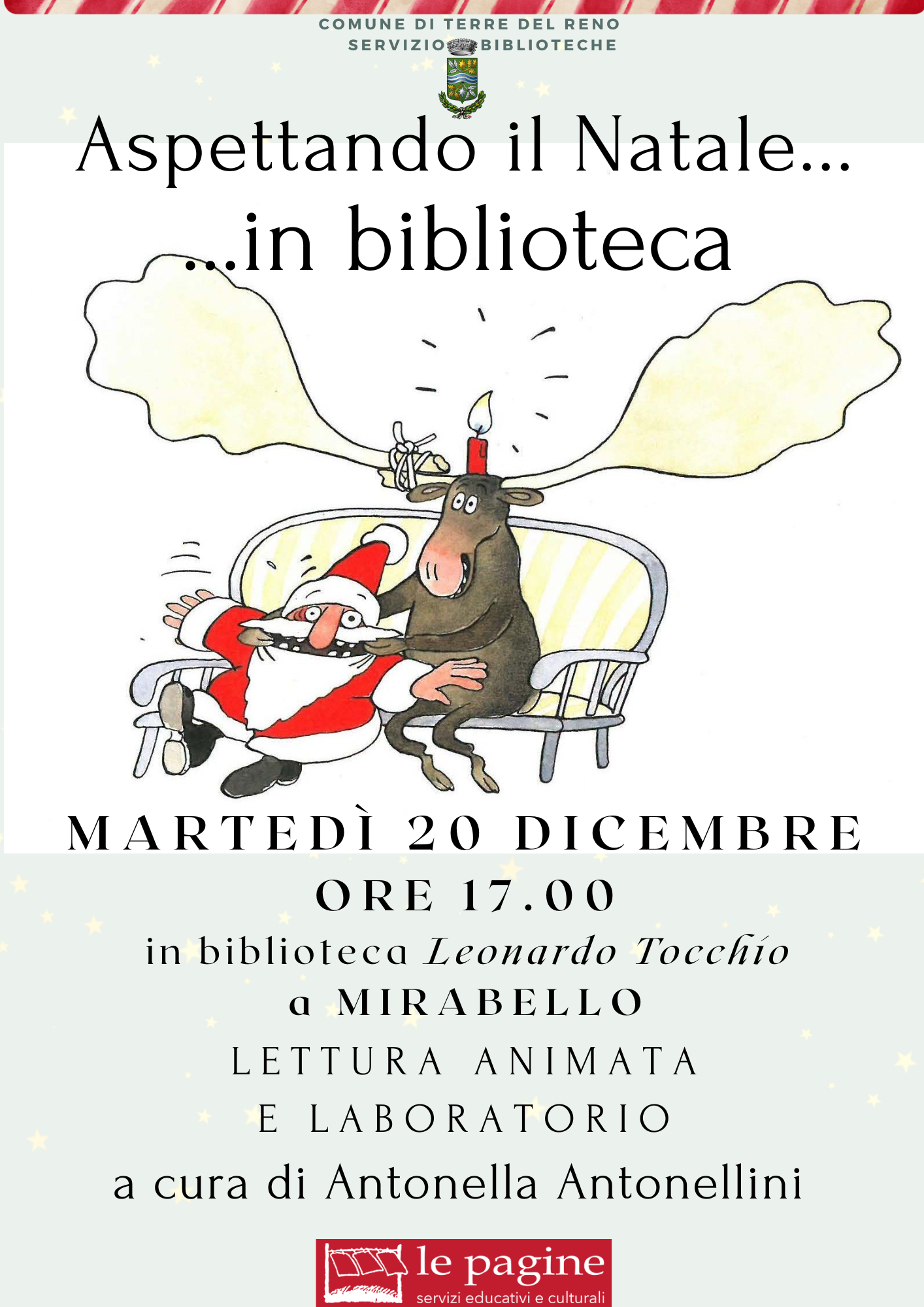 La biblioteca di Mirabello aspetta tutti i suoi piccoli amici il giorno 20 Dicembre alle ore 17,00 per festeggiare il Natale assieme all' Alce GUSTAVO!