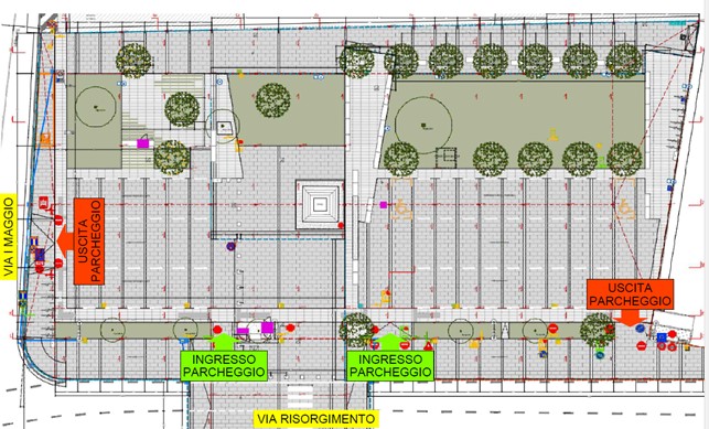 L’accesso ad entrambi i parcheggi sarà consentito dagli ingressi adiacenti il monumento di Piazza Pola, mentre le uscite saranno istituite rispettivamente in Via I Maggio e in Piazza Pola (lato parcheggio chiesa). Conseguentemente saranno invertiti i sensi unici di circolazione all’interno dei parcheggi.
