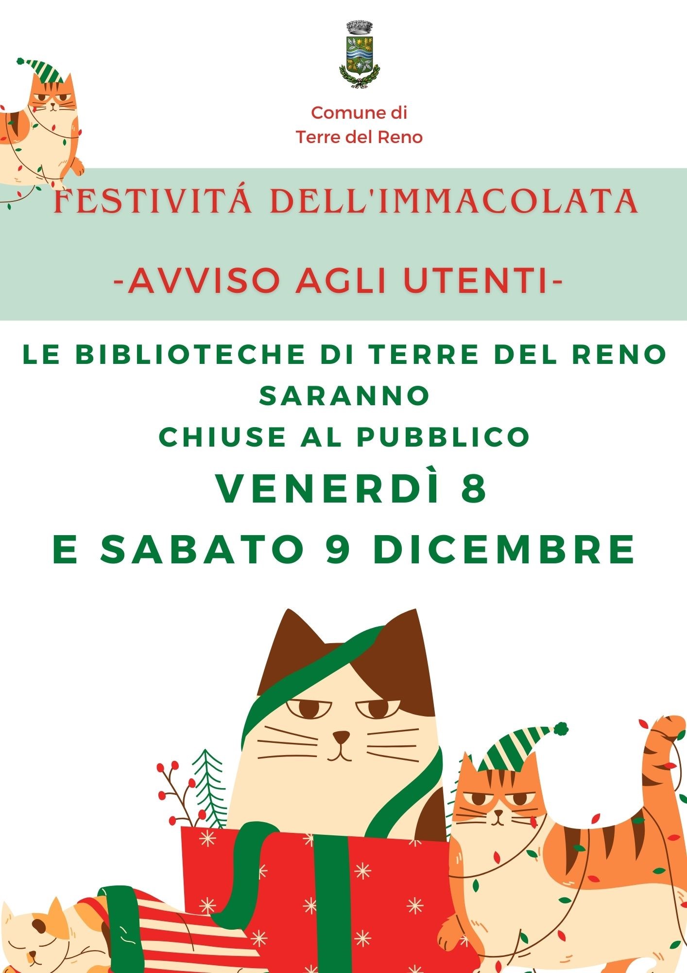 AVVISO AGLI UTENTI DELLE BIBLIOTECHE DEL COMUNE TERRE DEL RENO.