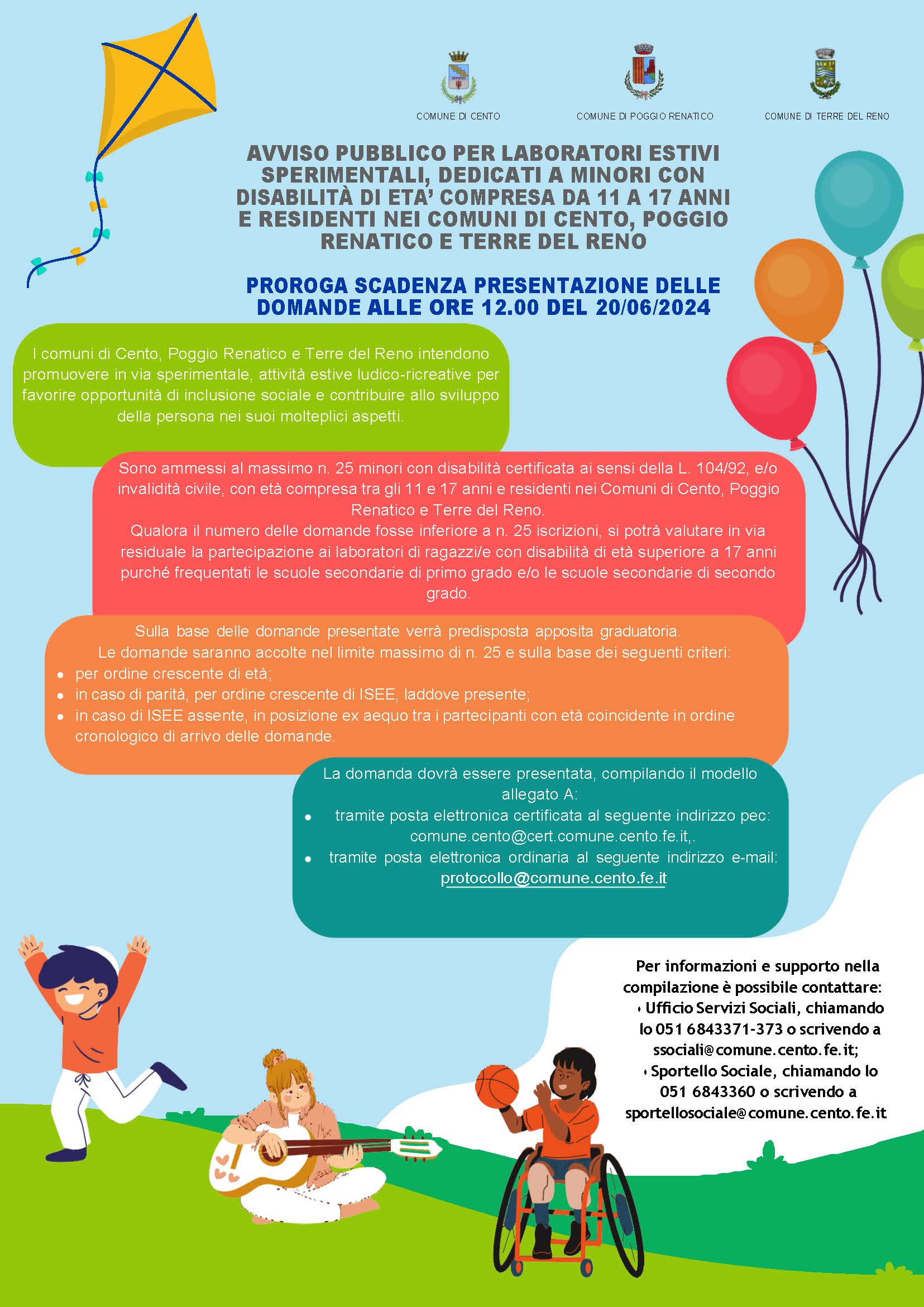 invalidità civile, con età compresa tra gli 11 e 17 anni e residenti nei Comuni di Cento, Poggio