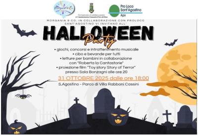 A Sant’Agostino, al Parco di Villa Rabboni Cassini, dalle ore 18, la Pro Loco Sant’Agostino, in collaborazione con Morgania & Co., propone l’Halloween Party: giochi, concorsi, intrattenimento musicale, cibo e bevande per tutti, letture per bambini con Roberta la Cantastorie e, a seguire, la proiezione del film Toy Story – Story of Terror nella Sala Bonzagni alle ore 20.